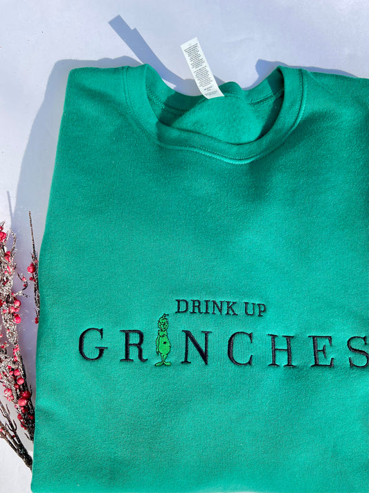 Drink up Grinches Embroidered ADULT SWEATSHIRT