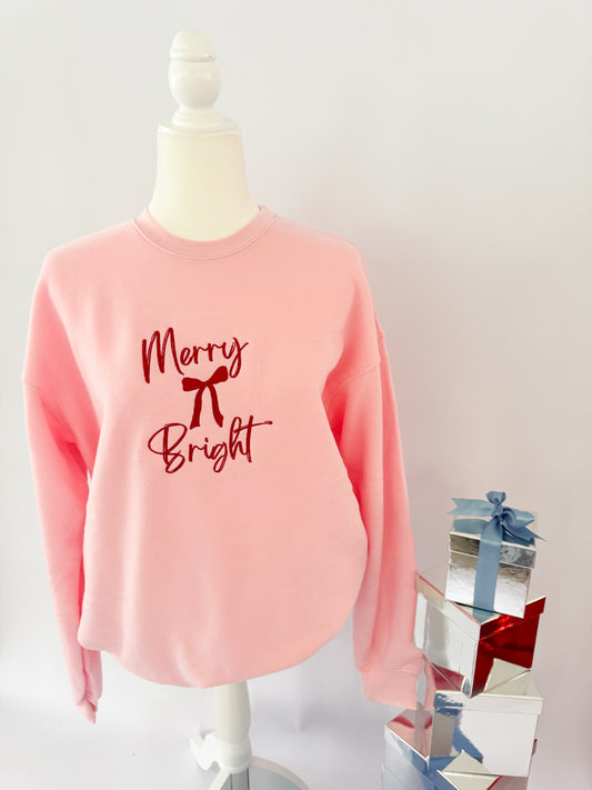 Merry & Bright Bow Embroidered ADULT SWEATSHIRT